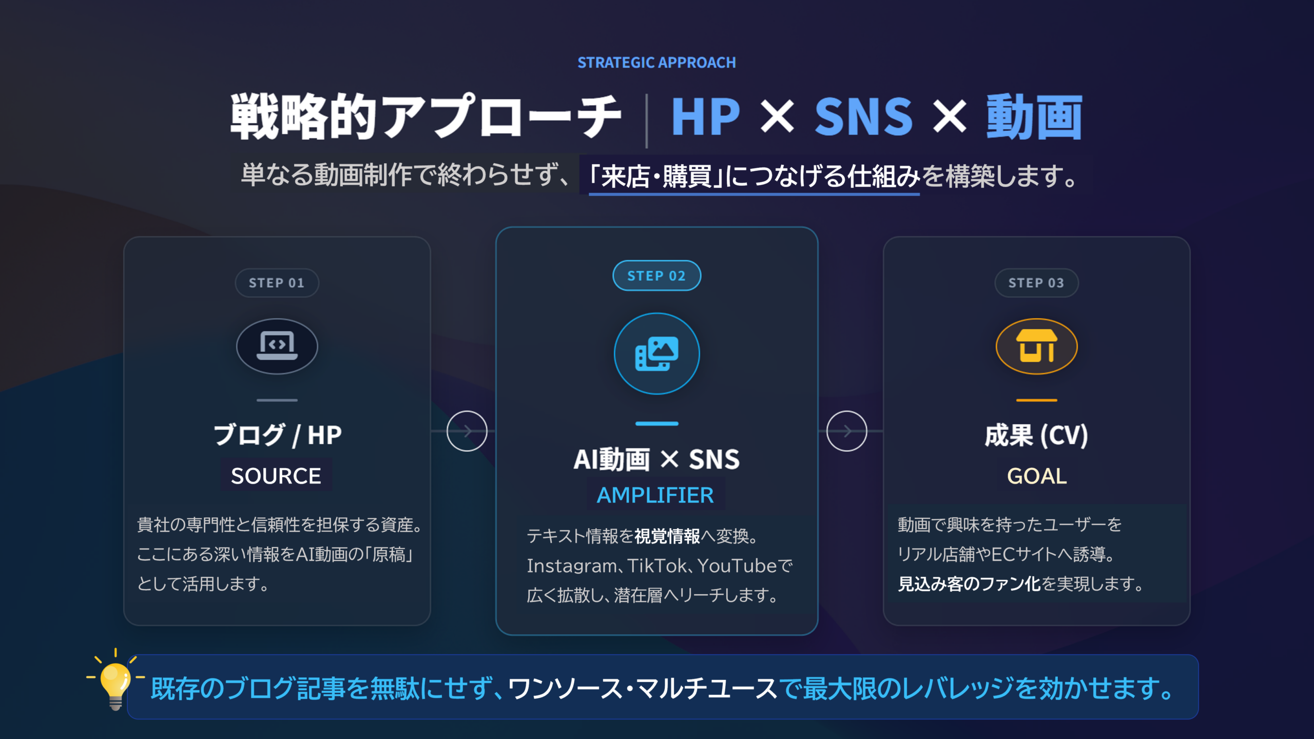 本プロジェクトは 『HP×SNS×動画(YouTube)➔来店誘致(リアル店舗・ネットショップ)』 という